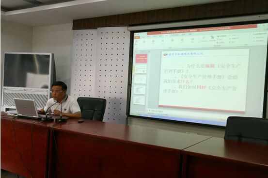 为全面贯彻“安全第一、预防为主、综合治理、全员参与”的安全生产与职业卫生管理方针,培育员工“安全第一、健康第一”的共同价值观,公司组织编写了《安全生产管理手册》。 2017年9月19日上午,公司对《安全生产管理手册》的内容组织管理人员进行了集中培训,公司总经理殷文元及经营层成员、公司全体中层干部、各子公司主要负责人及安全管理人员参加了培训。 培训开始前,公司董事长梅超华对每位管理人员学习、运行《安全生产管理手册》提出要求,强调安全生产是企业生产经营活动中的头等大事,党中央、国务院高度重视安全生产工作,我们在全面、全员落实安全生产主体责任,强化部门、岗位安全生产职责的同时,要以《安全生产管理手册》为标准,建立企业安全生产与职业卫生标准化管控体系,使“安全第一、健康第一”的理念在员工心中深深扎根,成为每一位员工行动的指南。  公司董事长梅超华讲话 公司常务副总经理徐永钧对《安全生产管理手册》中的“安全生产”与“职业卫生”两个篇章29个方面的内容进行了培训,重点对如何开展安全生产与职业卫生基础管理工作,安全生产与职业卫生基础设施安全条件的建设,企业开展安全文化建设三个方面进行了讲解。  公司常务副总经理徐永钧讲解手册内容  公司总经理殷文元及全体管理人员参加培训